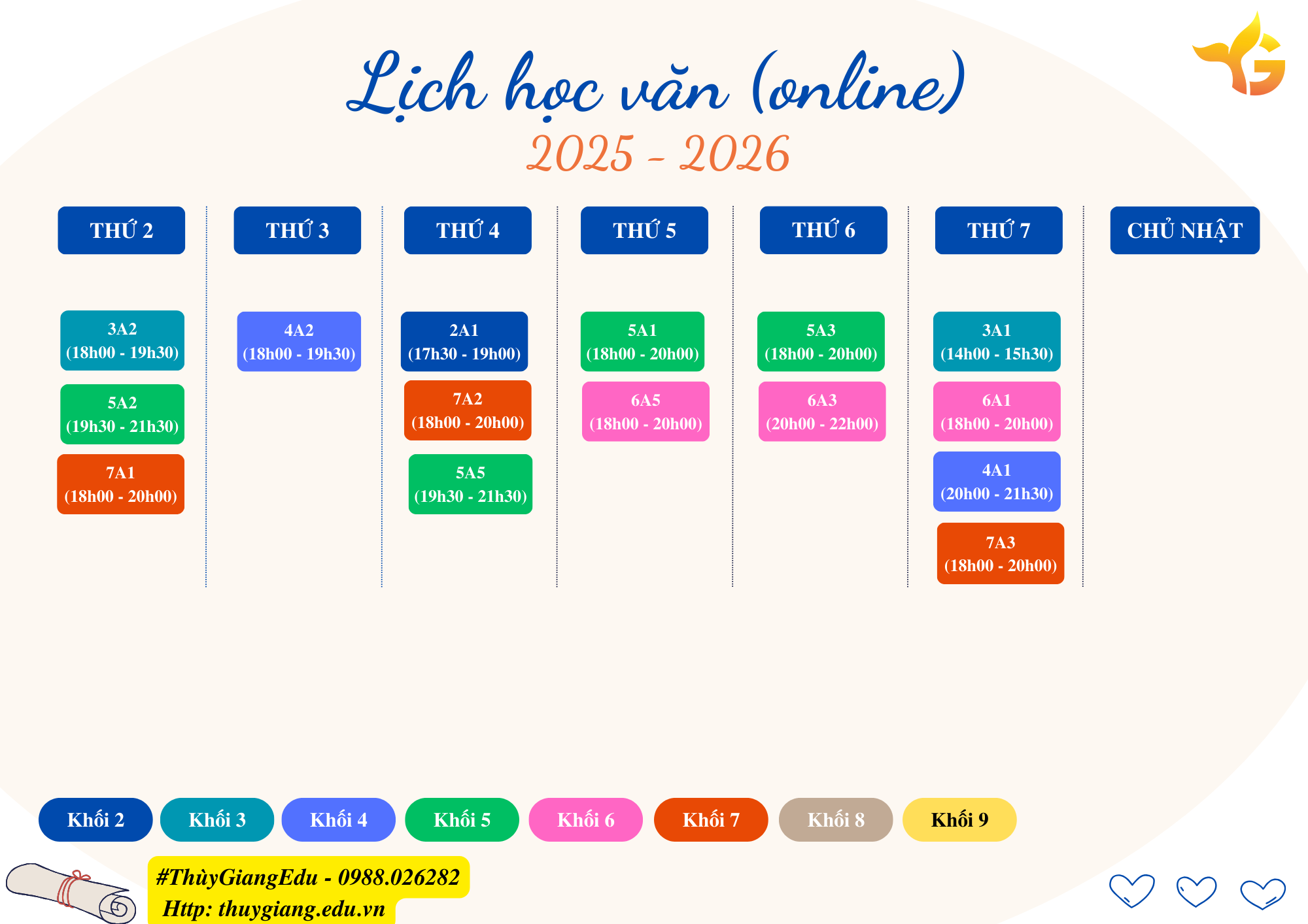 Lịch giảng dạy tại #ThùyGiangEdu năm học 2025-2026